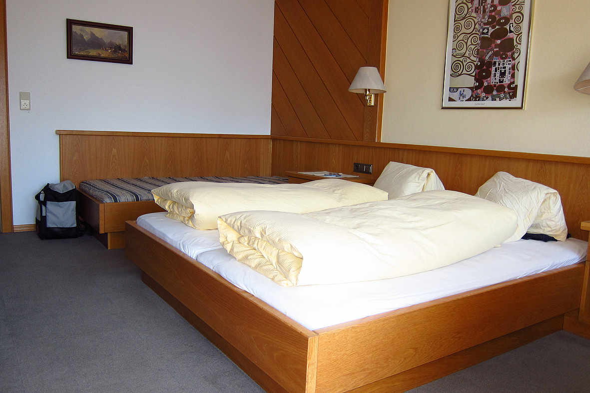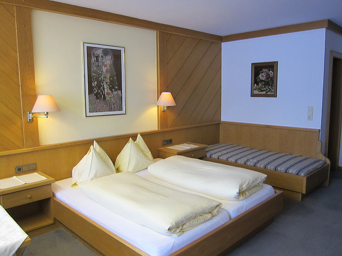 pokoj s manželskou postelí a případně rozkládacím gaučem či přistýlkou pro 1 dítě do nedovršených 16 let, sociální zařízení se sprchou či vanou, balkon