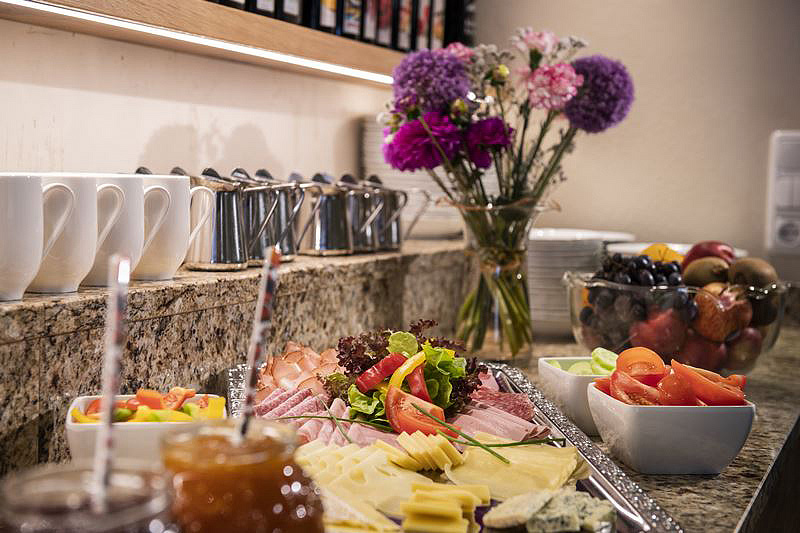 zpravidla servírovené menu s výběrem z několika hlavních jídel s přílohou, salátový bufet, nápoje za poplatek; pokrmy při dietních omezeních na vyžádání