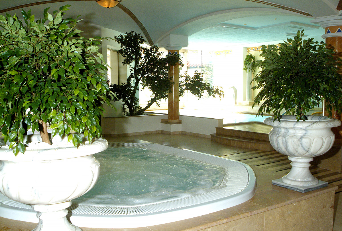 bazén 13 x 6 m, 2x vířivky#, 4x sauna#, bio sauna#, bio pára#, horizontální solárium#*, turecké lázně#, infrakabina#, ledový bazének 5 x 9 m#, inhalační grotto#, solná jeskyně#, posilovna, stolní tenis, stolní fotbal*, biliár*, 2x squash*, masáže* ; služby označené # mohou využívat děti až od 16 let