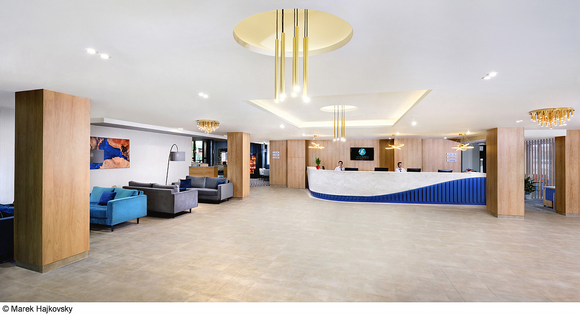 recepce, lobby, restaurace, bar, nepravidelné animační programy, výtah, hotelový trezor, vyhrazené parkoviště, wi-fi připojení k internetu