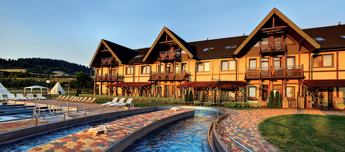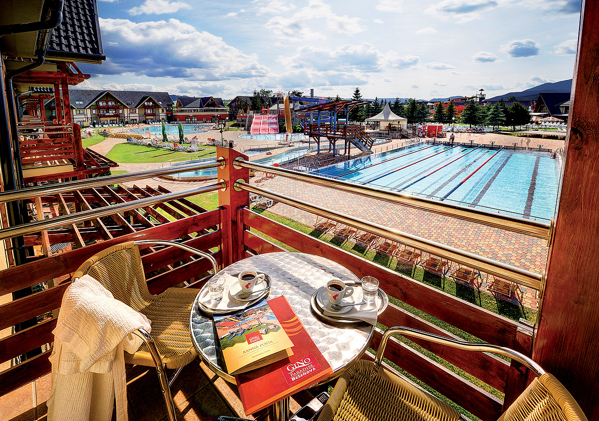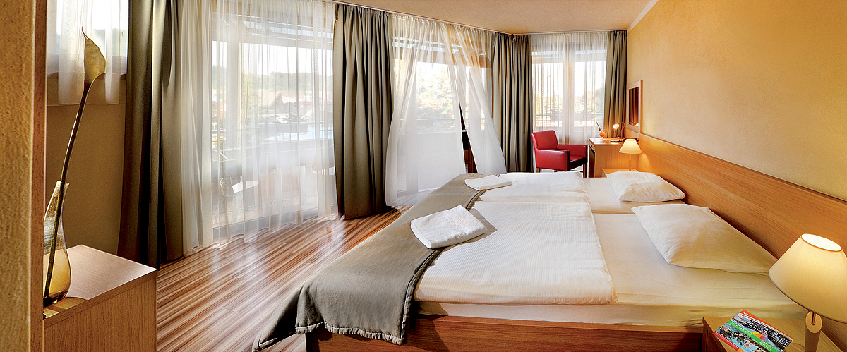 ubytování se nachází přímo v areálu termálního parku Bešeňová; recepce je společná s vedlejším Hotelem Galeria Thermal 4*