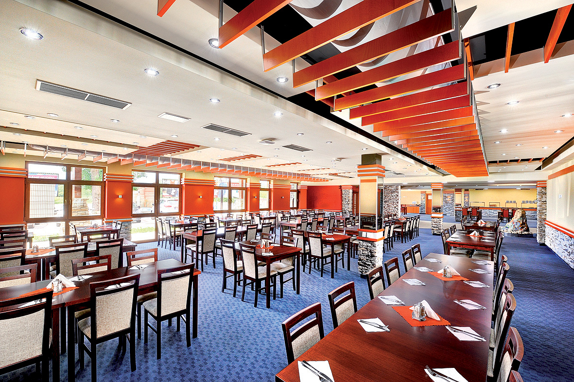 recepce, restaurace, restaurace vyhrazená pro hotelové hosty, bar, 3x konferenční místnost s celkovou kapacitou až 270 míst, nepravidelné animační programy, wi-fi připojení k internetu, hotelový trezor, vyhrazené parkoviště / nabíjecí stanice* (pomalé do 22 kW), minimarket