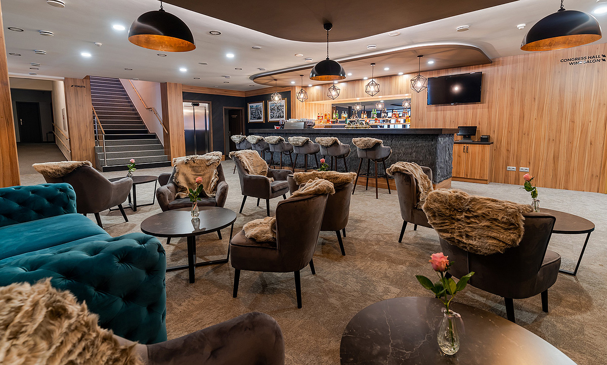 recepce, restaurace, lobby bar, vinotéka (vinný salón), místnost vyhrazená pro kuřáky (Cigar bar), kongresový sál, zahrada s dětským hřištěm, místnost pro úschovu zavazadel, úschovna jízdních kol, vyhrazené parkoviště, wi-fi připojení k internetu