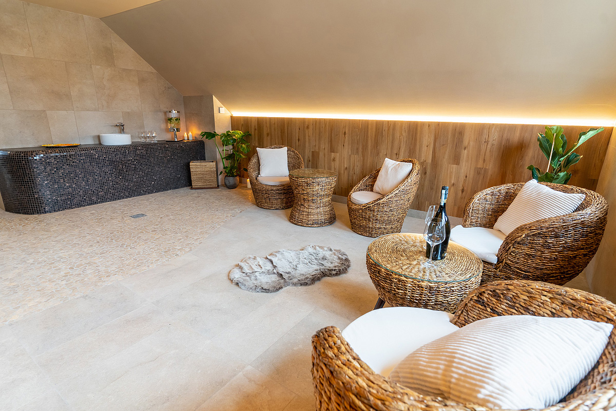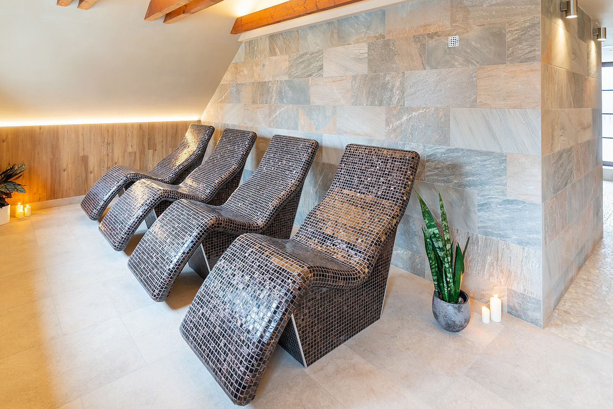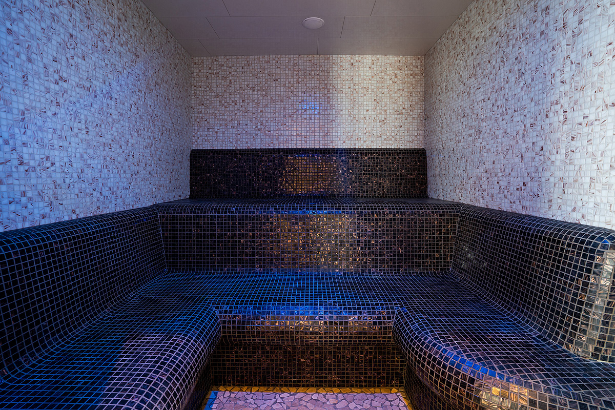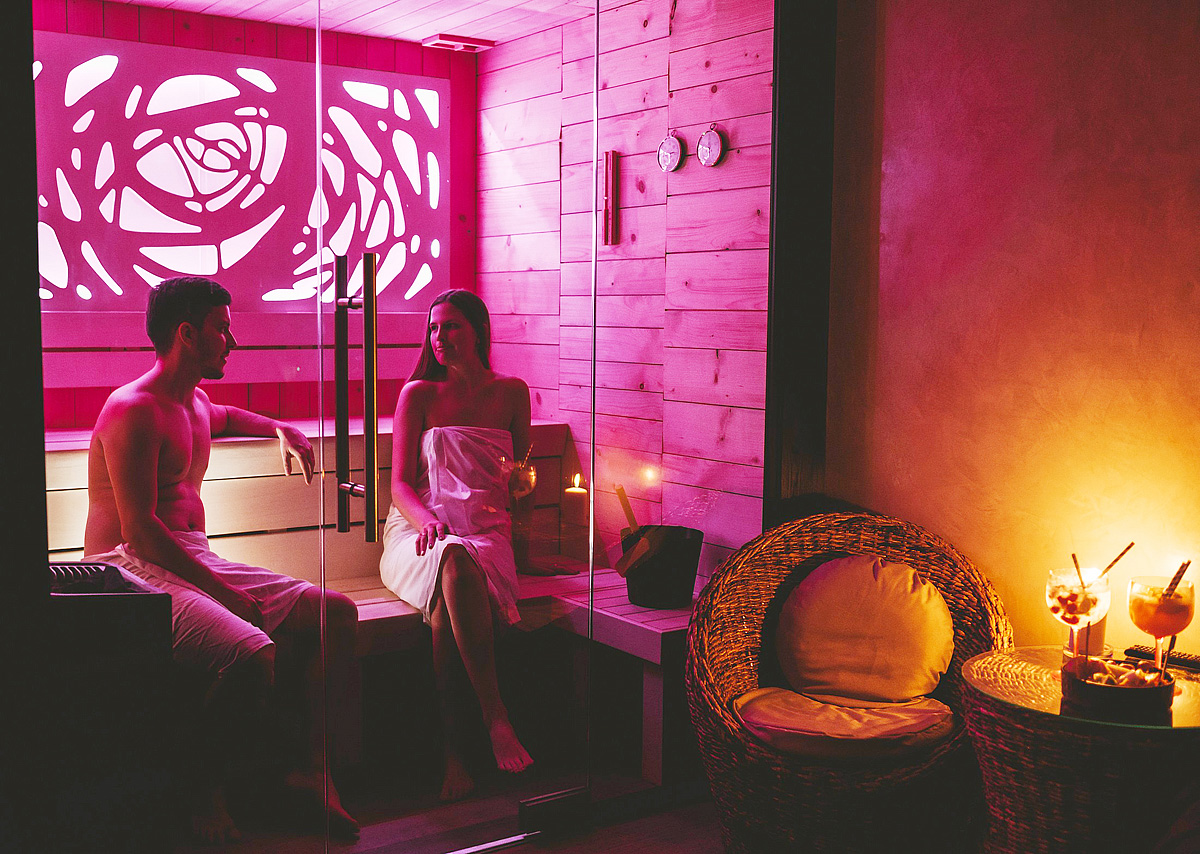 relaxační bazén s teplotou 34 °C, finská sauna, aromatická sauna, parní sauna, (privátní sauna), tepidarium, masáže*