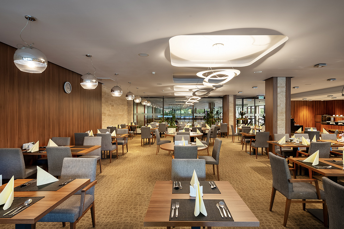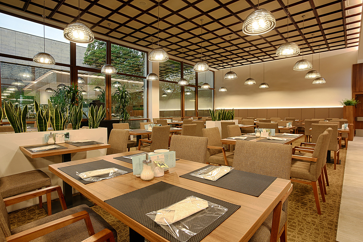 recepce, lobby, restaurace Galerie, Calla á la carte, Park Café, Retro bar, sluneční terasa s venkovním posezením, konferenční sál až pro 350 osob s veškerým audio-vizuálním vybavením, 10 společenských místností s audio-vizuálním vybavením, úschovna jízdních kol, wi-fi připojení k internetu, concierge, výtah, vyhrazené parkoviště*, nabíjecí stanice pro elektro-automobily*