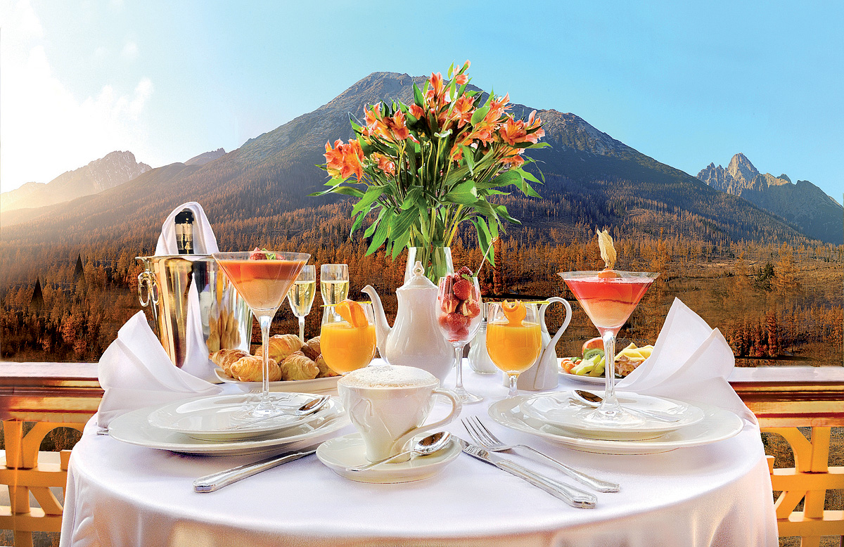 snídaně - formou bohatého mezinárodního bufetu včetně nápojů a bio koutku