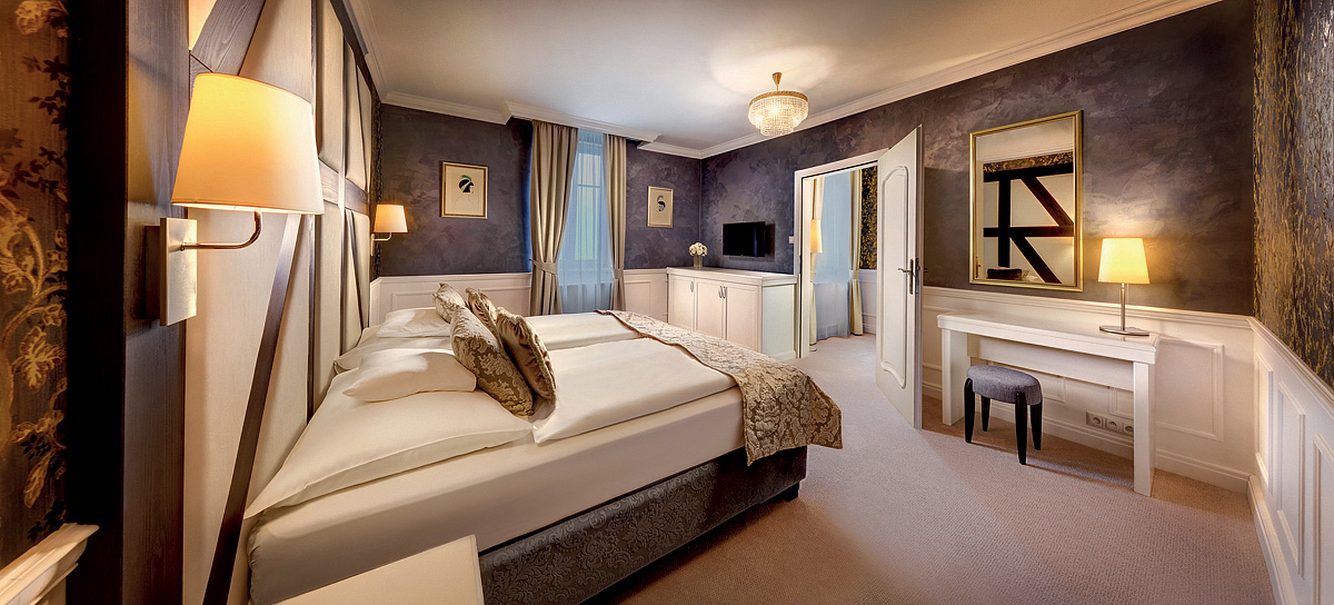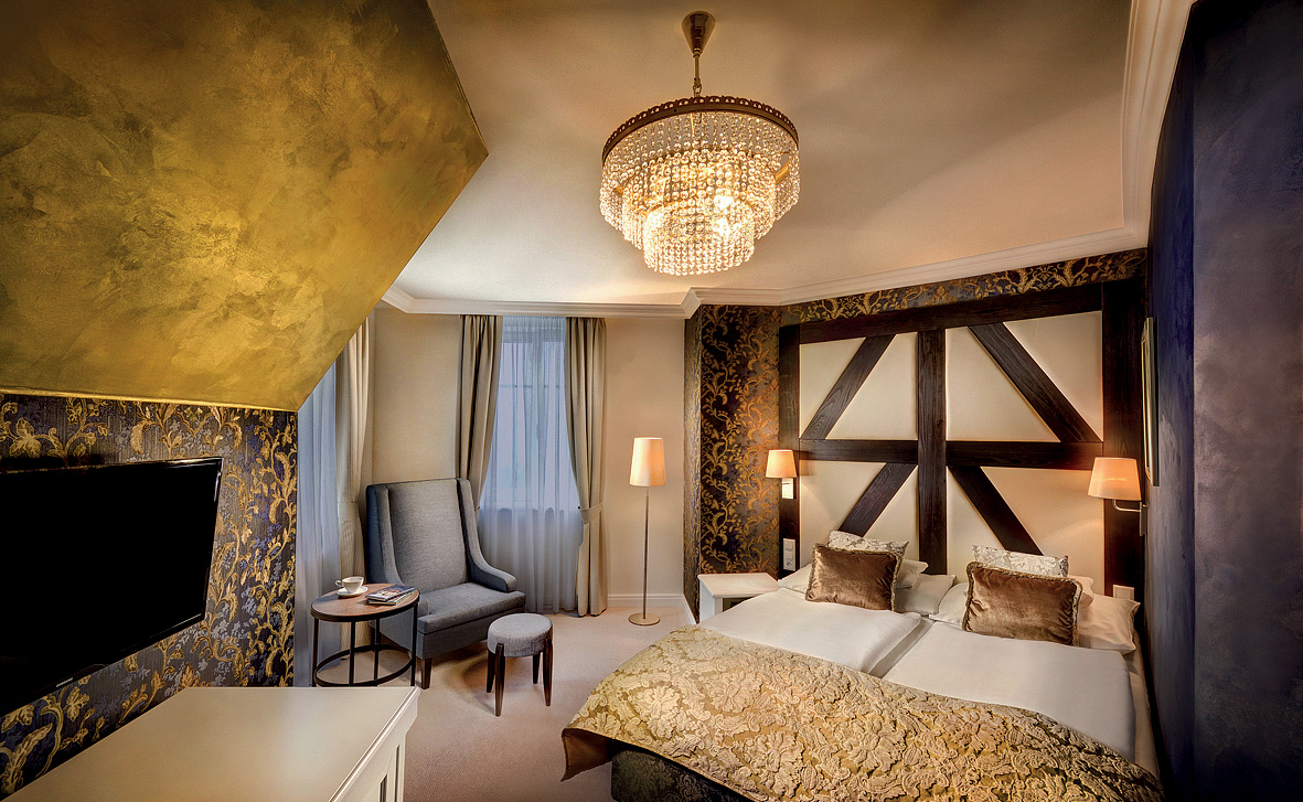 70m² – velký apartmán s bohatou secesní výzdobou, ložnice s manželskou postelí s baldachýnem, obývací a konferenční pokoj, sociální zařízení s vířivou vanou, 2x balkon s výhledem na Podtatranskou kotlinu a Nízké Tatry