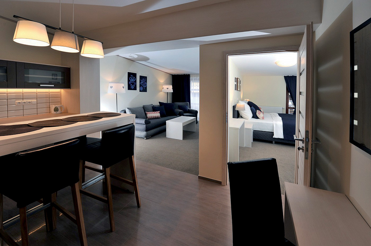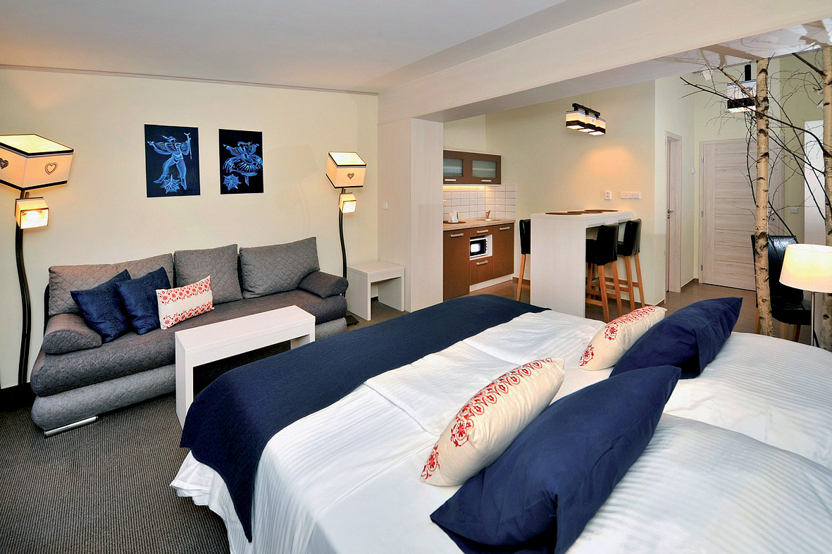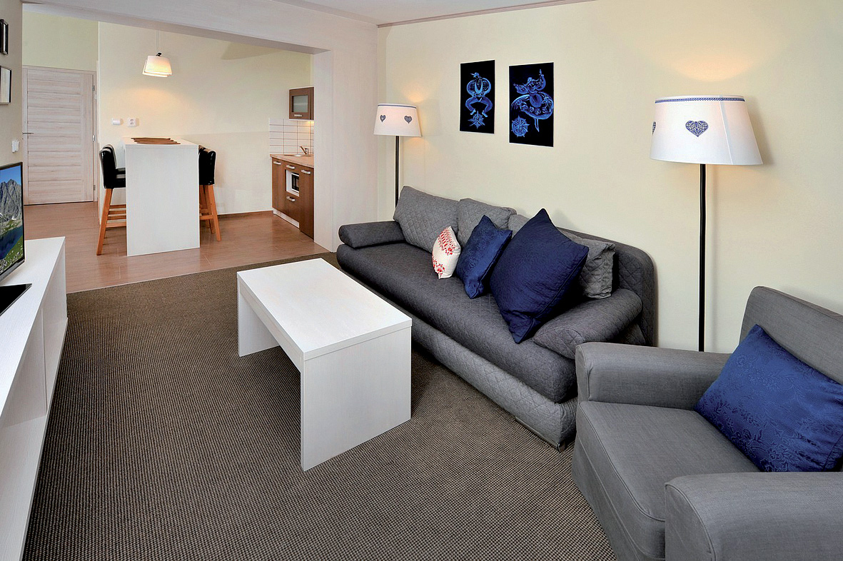 děti do nedovršených 2 let zdarma (bez nároku na lůžko a služby; max. 1 dítě nad rámec plného obsazení apartmánu)