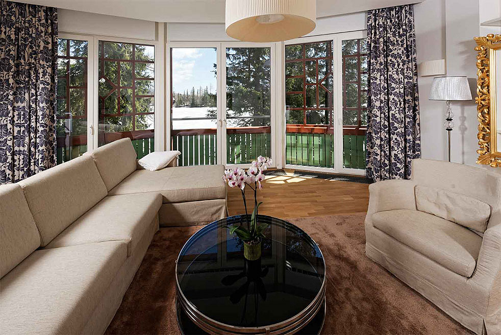 samostatně stojící Vila se nachází na břehu plesa a spadá pod 140 m vzdálený Hotel Solisko, ve kterém jsou poskytovány stravovací i wellness služby