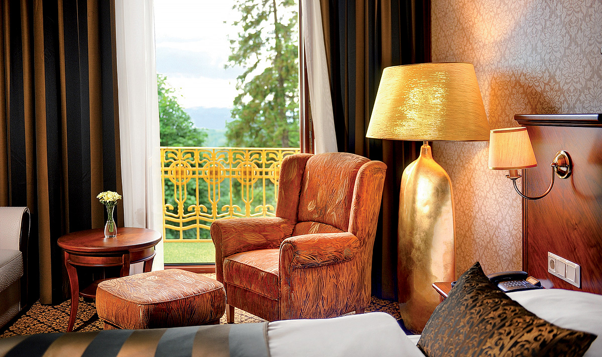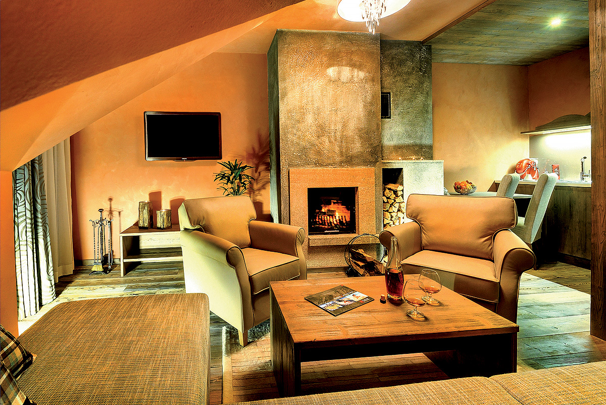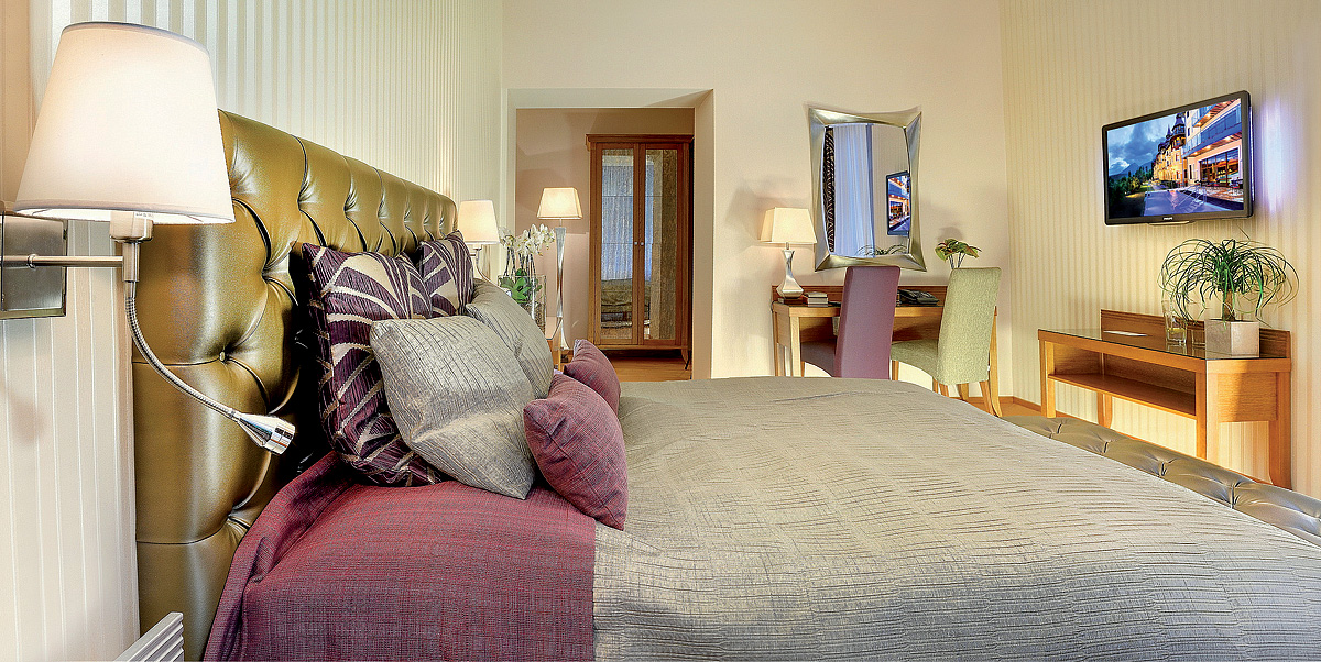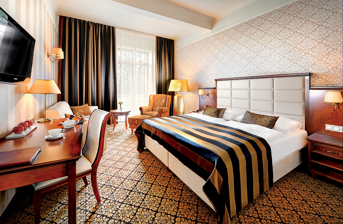 TV sat., telefon, wi-fi připojení k internetu, trezor, fén, minibar, kávový a čajový set, župany do wellness
