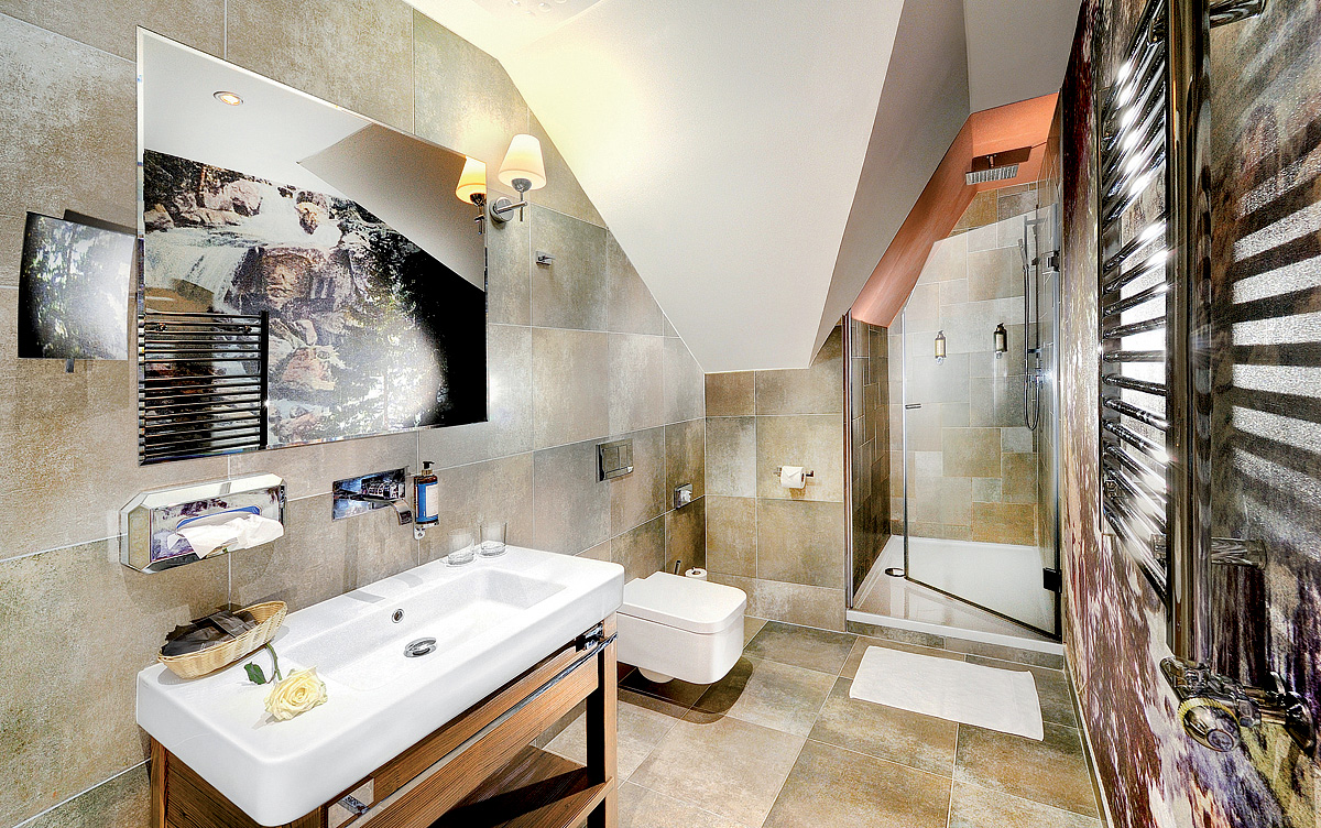 pokoj s manželskou postelí či 2 samostatnými lůžky a případně 1 či 2 přistýlkami, sociální zařízení, balkon s výhledem na Tatranskou Lomnici a Podtatranskou kotlinu