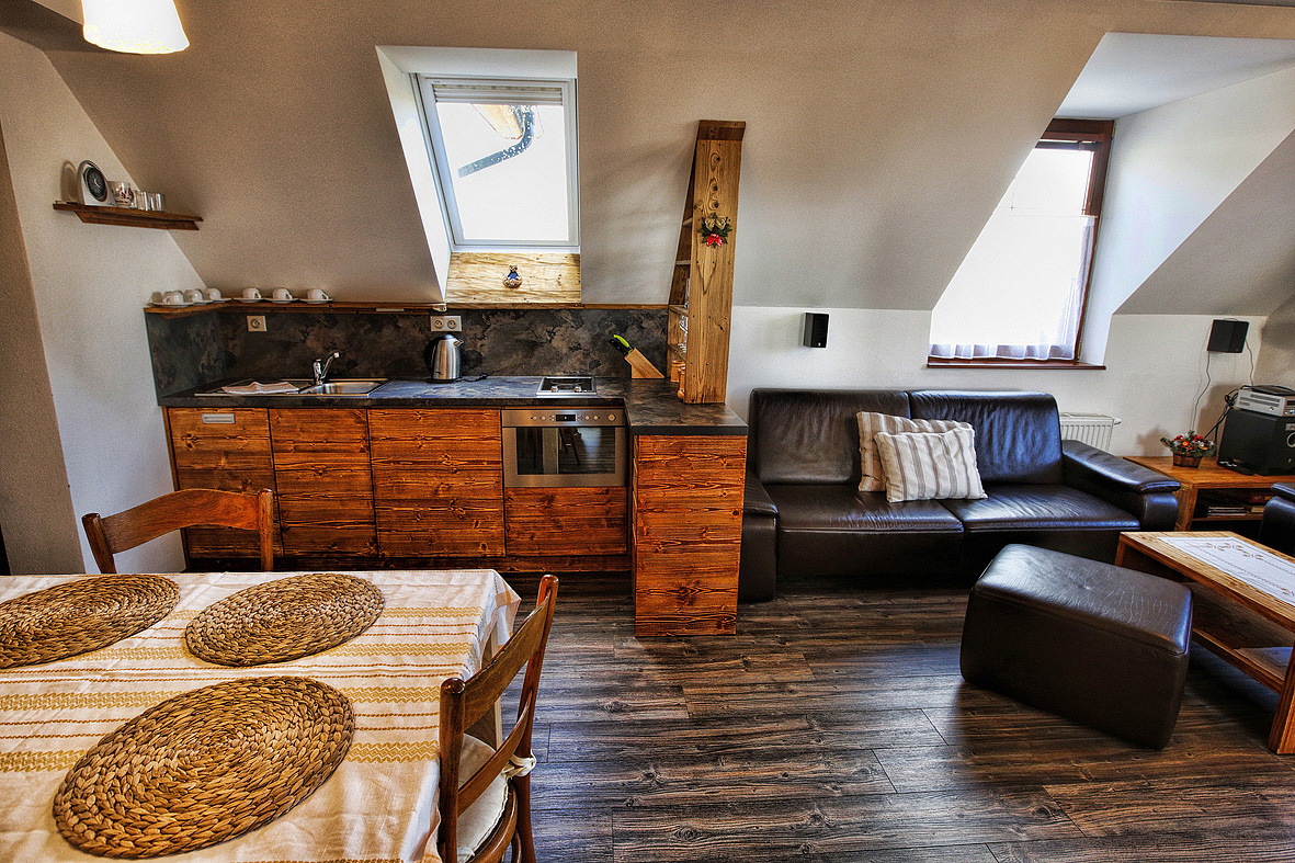apartmánový komplex v tradičním vysokotatranském stylu jen pár kroků od centra Tatranské Lomnice i lanové dráhy na Skalnaté pleso i ikonický Lomnický štít