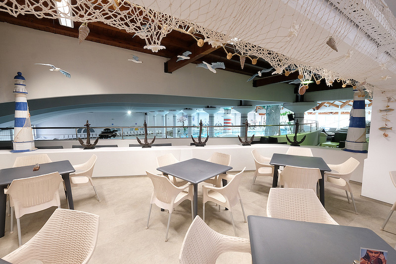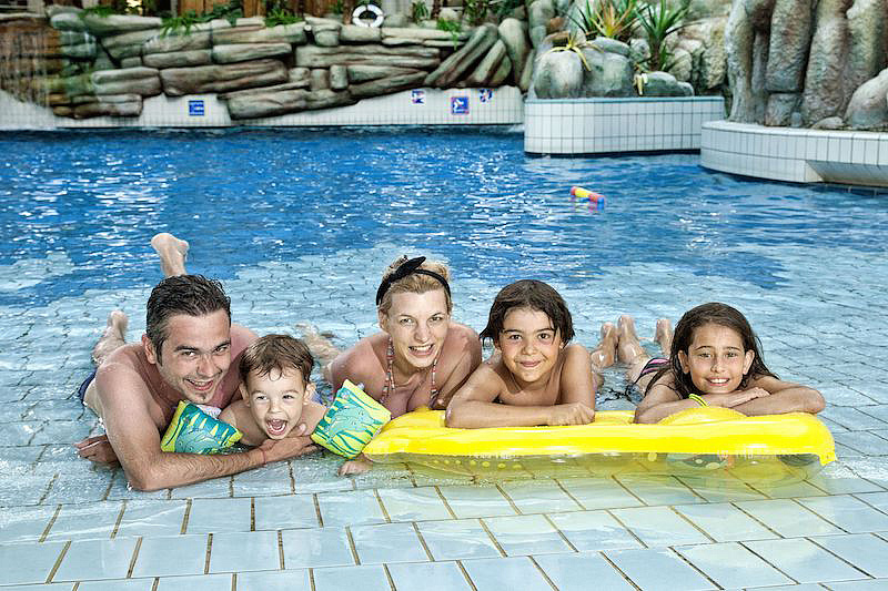 letní termální riviéra (otevřena od 02.06. do 08.09., cca. 10.000 m²): pirátský ostrov, dětský vodní svět, rodinná skluzavka, divoká řeka, pomalá řeka, bazén s vlnobitím, skluzavky, tobogány, termální bazény, plavecký bazén, zážitkové bazény, masážní bazény; slunečníky* a lehátka* (Olympijský bazén je otevřen od 27.04.)