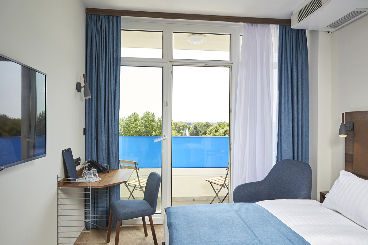 klimatizace, TV sat, telefon, fén, mini chladnička, wi-fi připojení k internetu, župan a osuška (pouze pro dosp.)