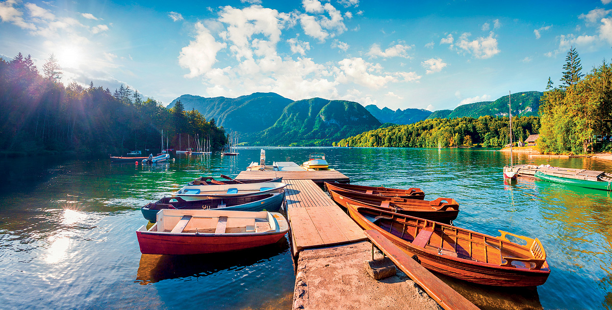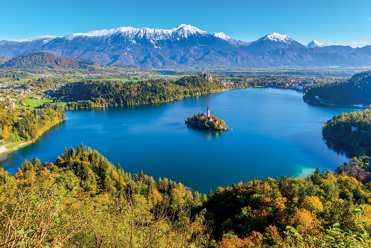 Ať už se vydáte vzhůru „po svých“, na kole či lanovkou, vždy si budete se zatajeným dechem vychutnávat nádherná panoramata s nejvyšší horou Slovinska Triglavem, Bohinjským jezerem a okolním národním parkem. Jednou z nejkrásnějších částí Slovinska je Bledské jezero s kostelem na ostrově, jenž je zcela jistě nejfotografovanějším místem v zemi. Na Bledu jsou však i termály lákající k celoročním pobytům. Bledské jezero je oproti jiným horským jezerům velmi teplé, má dlouhou koupací sezónu a láká nabídkou všemožných sportů (mj. paddleboard, veslování).