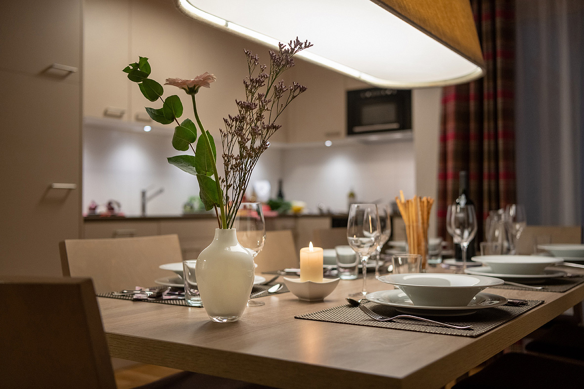 45 m² - 1 ložnice s manželskou postelí, obývací pokoj s kuchyňským koutem a rozkládacím gaučem pro 2 osoby, sociální zařízení, balkon či terasa