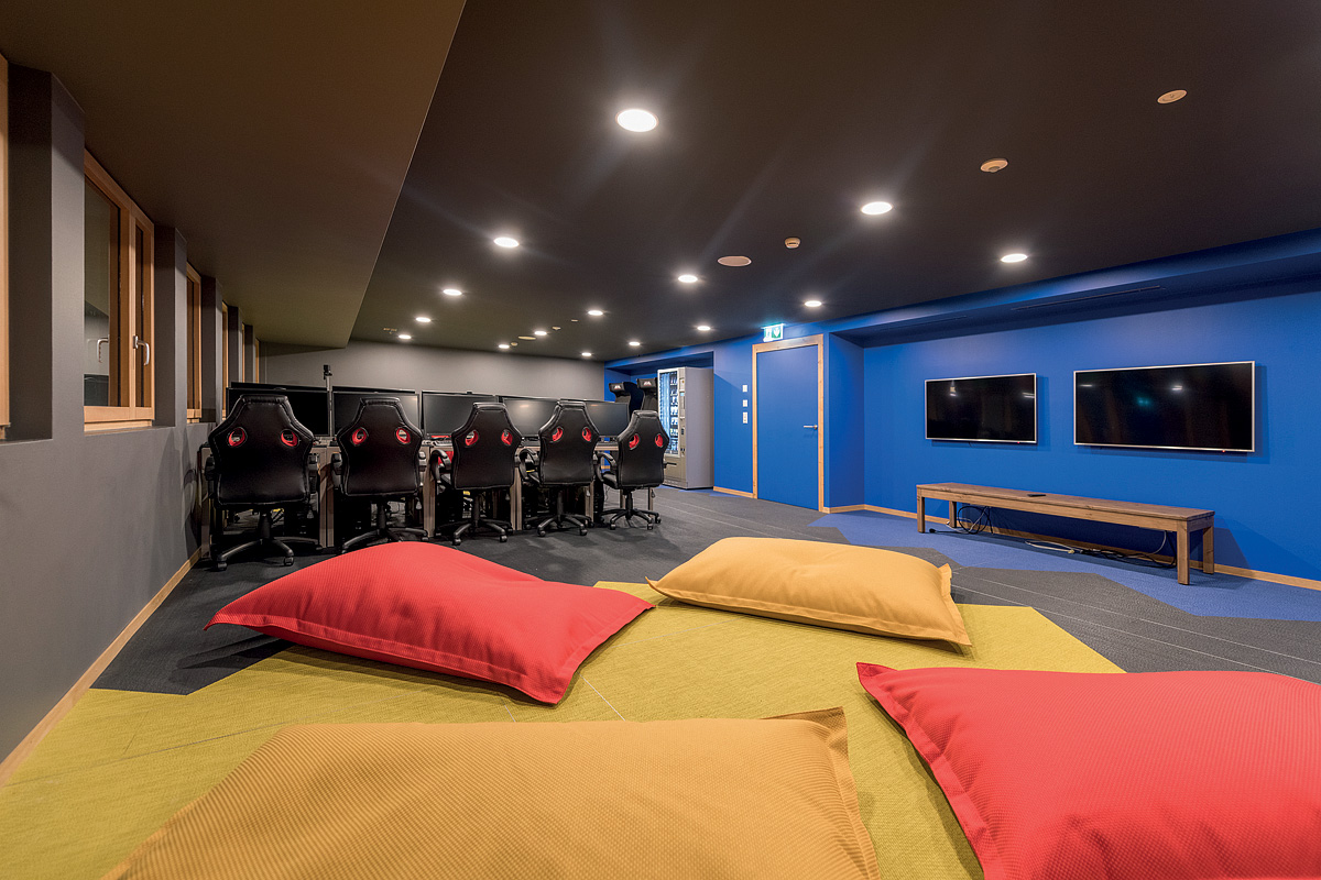 recepce / wi-fi připojení k internetu, à la carte restaurace / bar, společenská místnost, dětská herna (s obrazovkou, herními konzolemi a Xbox), dětský koutek, seminární místnost, úschovna jízdních kol, výtah, vyhrazené parkoviště*, garážová stání* (počet míst omezen), pračka* a sušička*, nabíjecí stanice* elektroaut