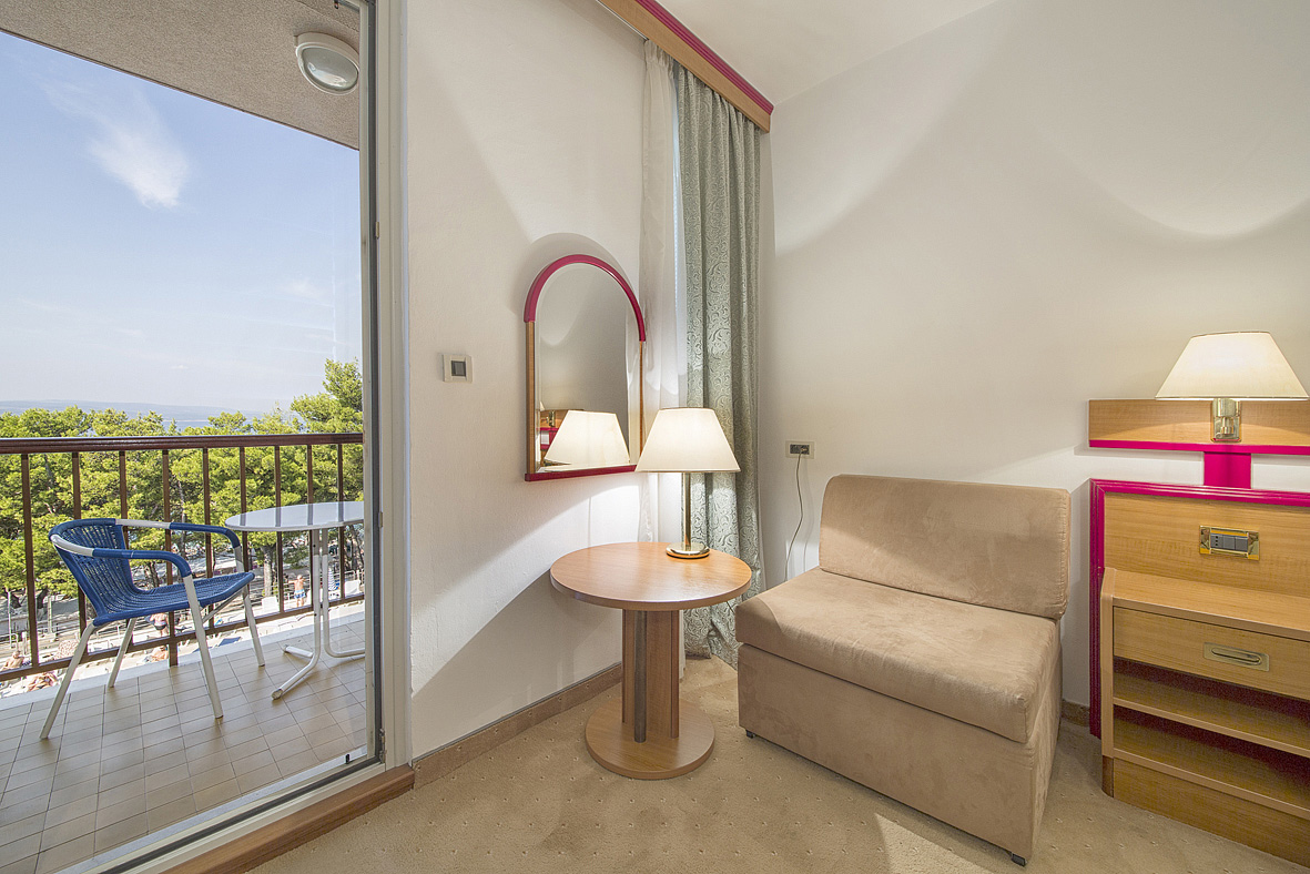 24 m² - pokoj s manželskou postelí nebo oddělenými lůžky, sociální zařízení s vanou, balkon stranou k moři, možnost 3. lůžka formou přistýlky