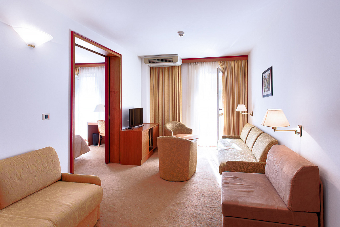 24 m² - pokoj s manželskou postelí nebo oddělenými lůžky, sociální zařízení s vanou, balkon, možnost 3. lůžka formou přistýlky