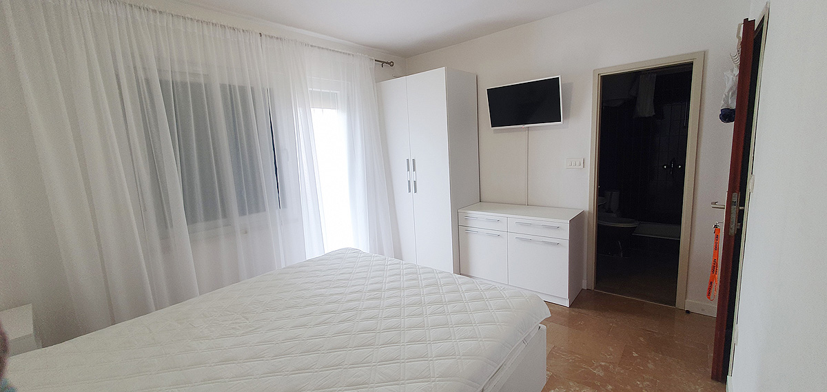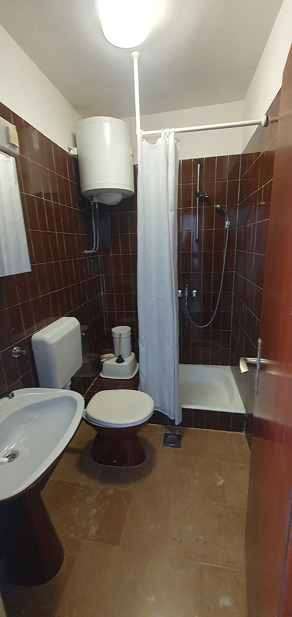 pokoj s manželskou postelí, sociální zařízení se sprchou, balkon