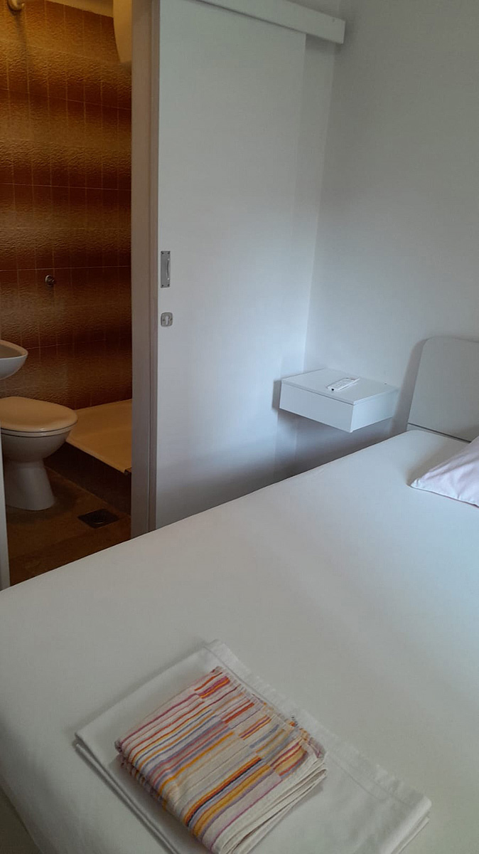 velmi malý pokoj s 1 lůžkem, sociální zařízení se sprchou, balkon