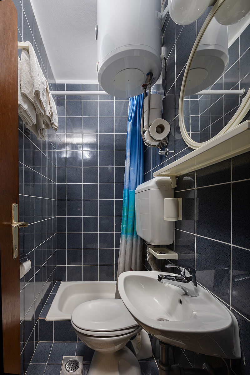 Baška Voda, centrum - 150 m, pláž / oblázková s pozvolným vstupem do moře - 120 m, letiště Split – 70 km