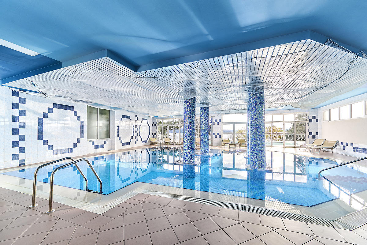 vnitřní bazén, venkovní bazén s lehátky (1.6. - 30.9.), slunečníky a sprchou, vodní sporty*, půjčovna kol*, dětské hřiště, tenisové kurty*