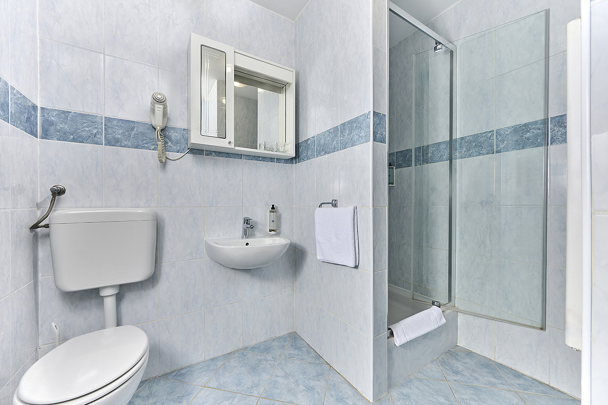 Standard 2 - pokoj s manželskou postelí či dvěma samostatnými lůžky, sociální zařízení se sprchou nebo vanou