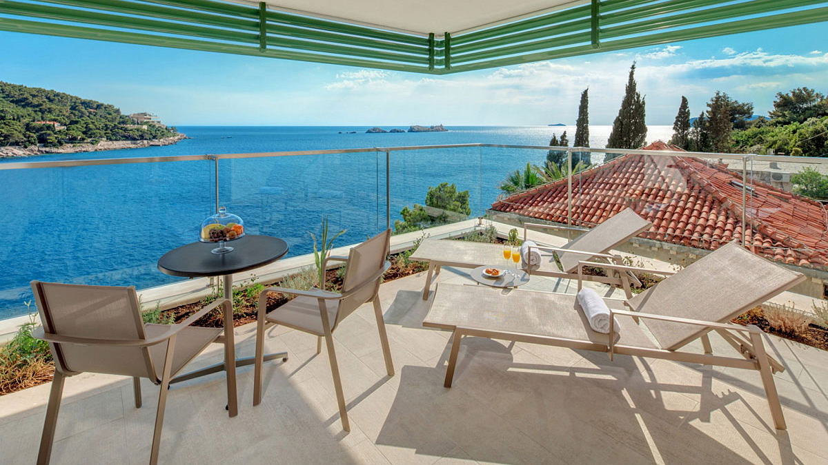 cca 25 m², pokoj s manželskou postelí nebo dvěma samostatnými lůžky, sociální zařízení s vanou, balkon v výhledem na moře