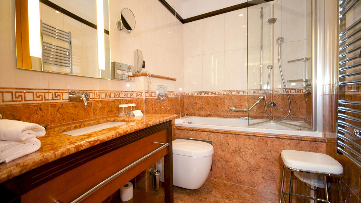 klimatizace, TV sat., telefon, wi-fi připojení k internetu, fén, minibar*, trezor*, servis na přípravu kávy a čaje