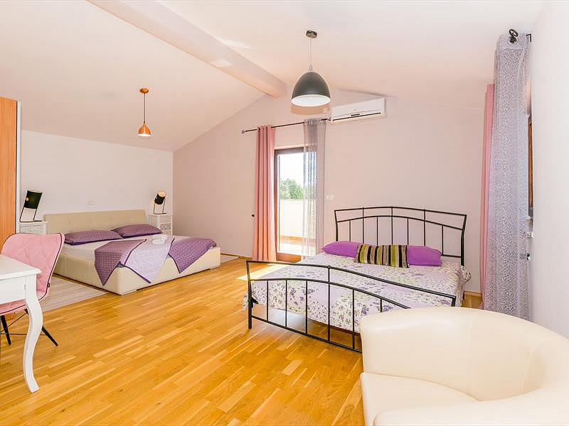 4x pokoj s manželskou postelí, obývací pokoj, kuchyň s jídelním koutem, 4x sociální zařízení, balkon