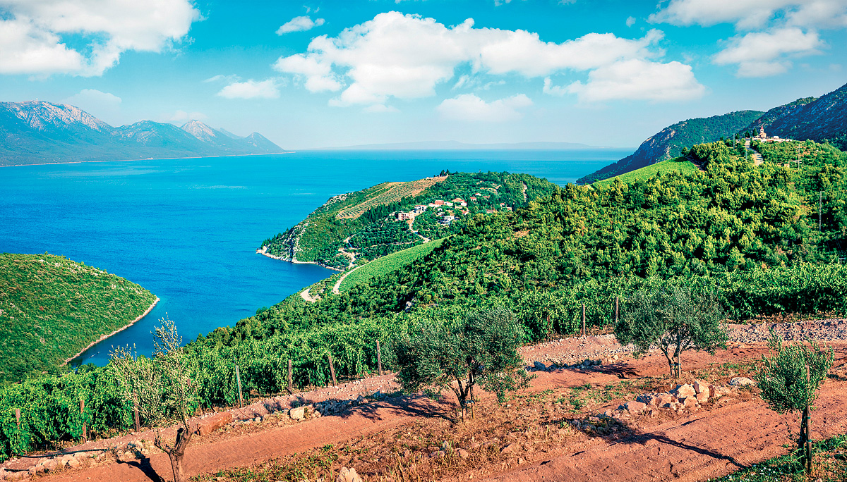 Významnou částí jižní Dalmácie je poloostrov Pelješac s plochou 348 km2, délkou 65 km a šířkou mezi 3 až 7 km. Tvoří jej převážně vysoká vápencová pahorkatina lemující téměř celé jižní pobřeží. Níže položená úrodná část ve středu poloostrova je vyhlášenou vinařskou oblastí, proslulou nejlepšími druhy chorvatské vinné révy.