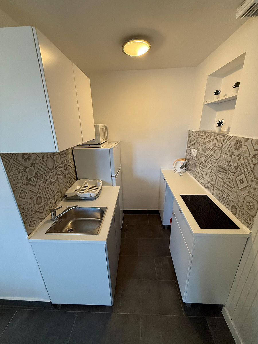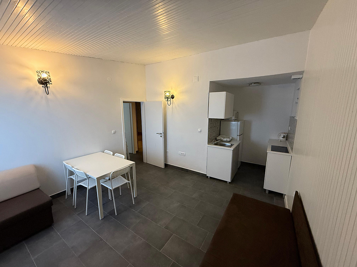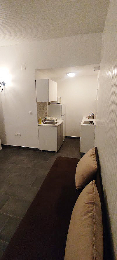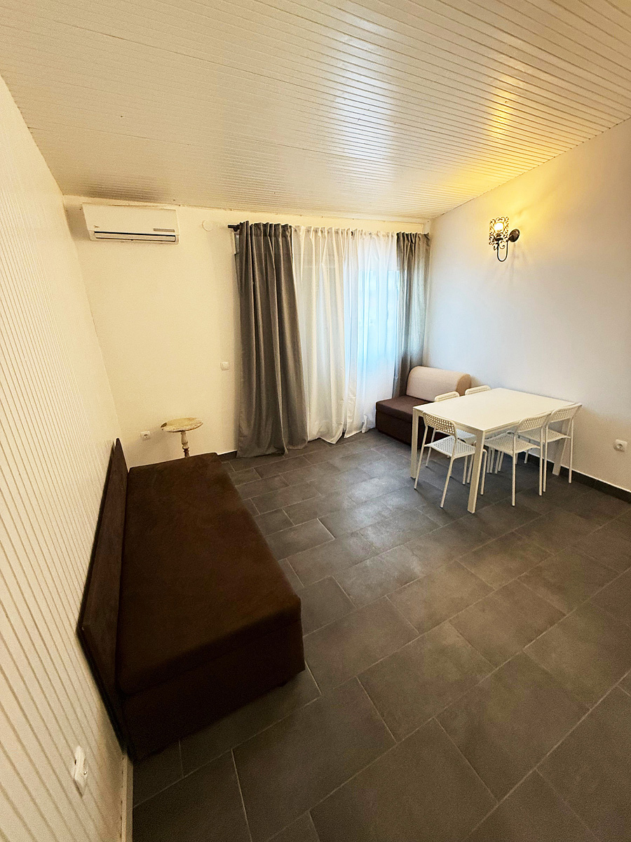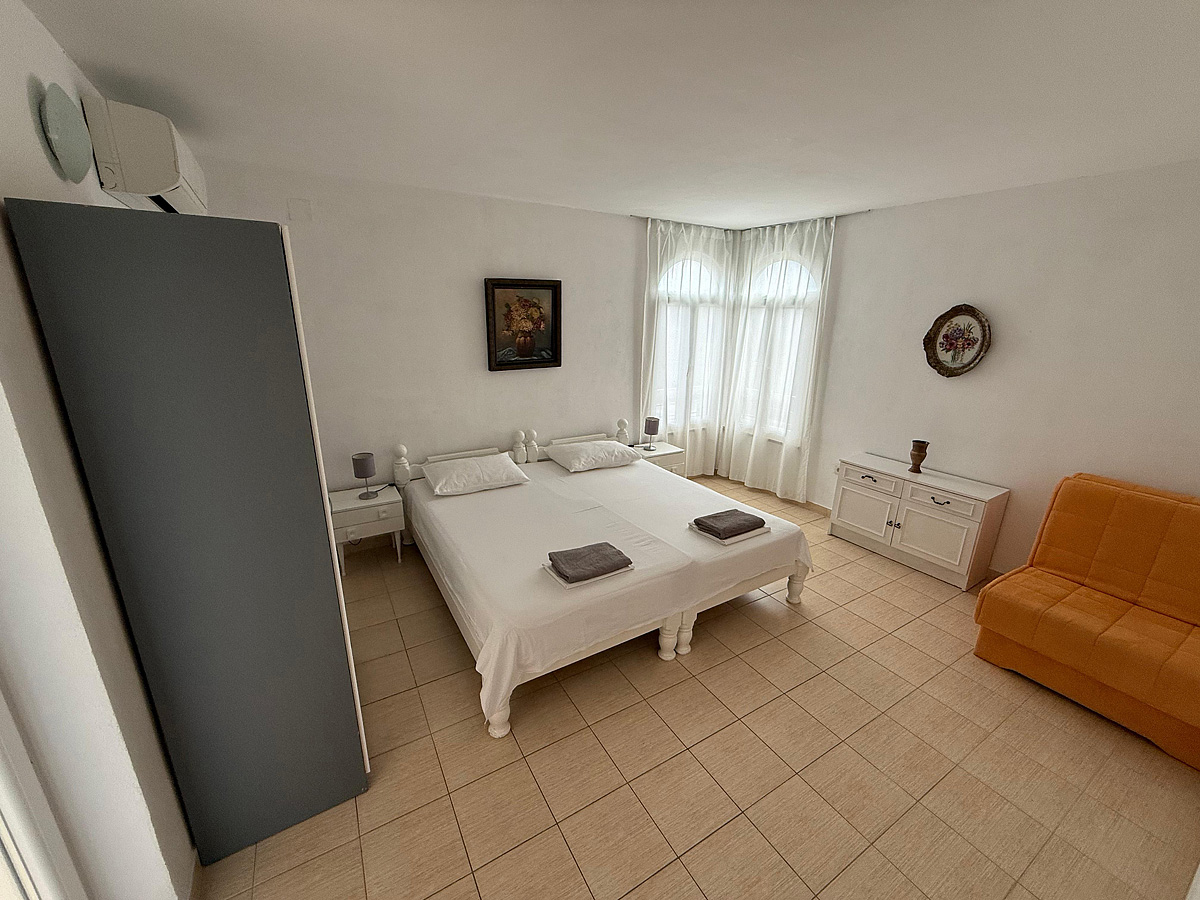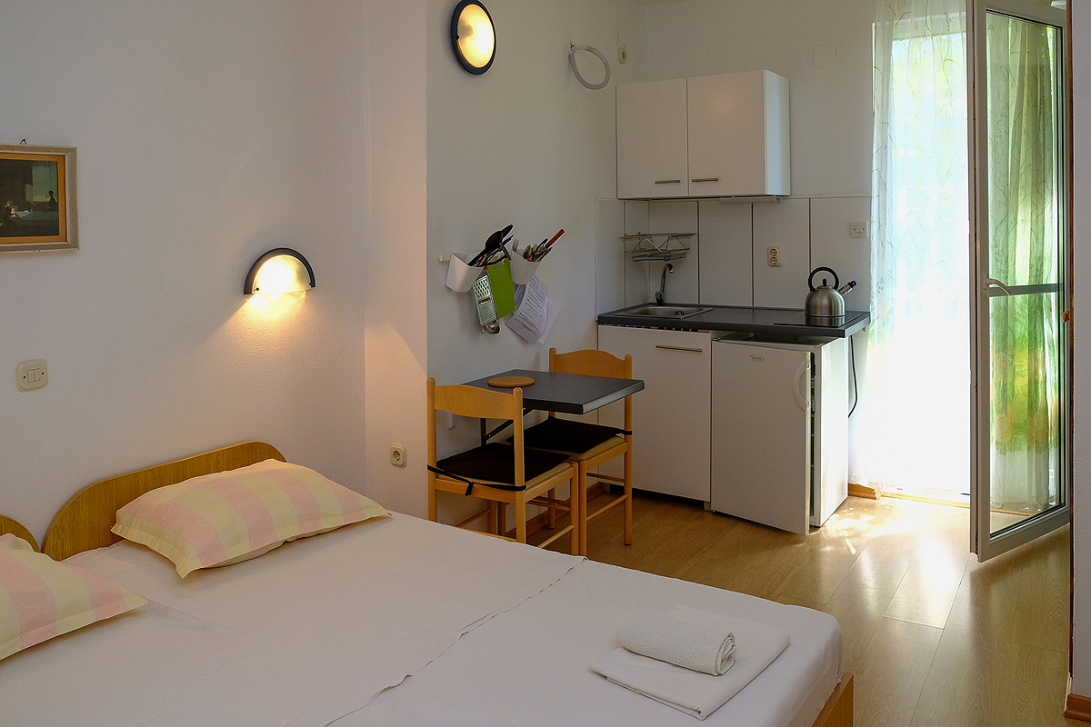 studio se dvěma pevnými lůžky a jednou přistýlkou, kuchyňským koutem, balkonem a klimatizací, možnost 3. lůžka formou přistýlky pro děti do 12 let