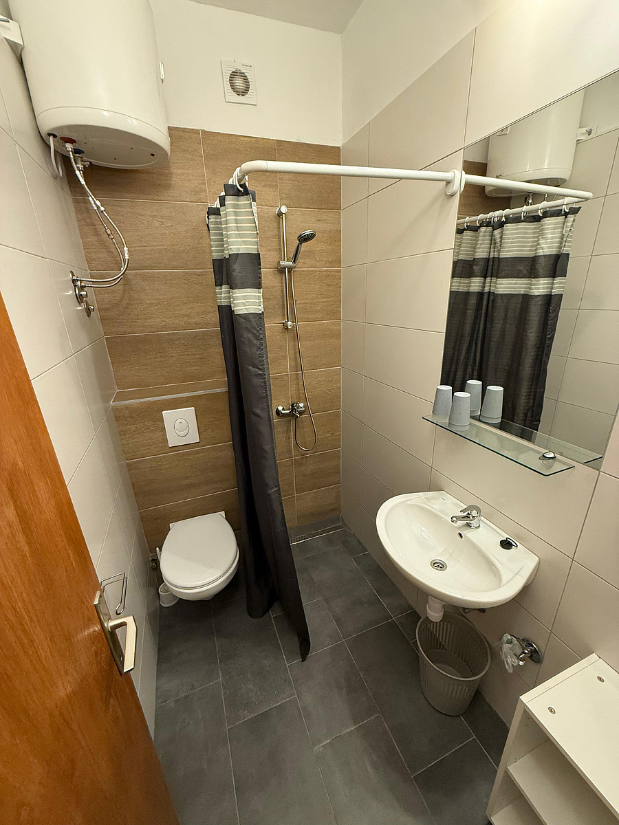 1 ložnice s manželskou postelí, 1 ložnice se 2 samostatnými lůžky - propojené buď přes balkon nebo vstupní chodbičkou, sociální zařízení, kuchyň je ve vstupní chodbičce nebo na balkoně; možnost 5. lůžka formou přistýlky pro děti do 12 let