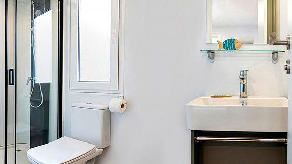 34 m² - ložnice s manželskou postelí, pokoj s dvěma oddělenými lůžky, obývací pokoj s kuchyňským koutem (varná deska, lednice, kávovar) a pohovkou pro dítě do nedovršených 12 let, 2x sociální zařízení se sprchou, zastřešená terasa s posezením