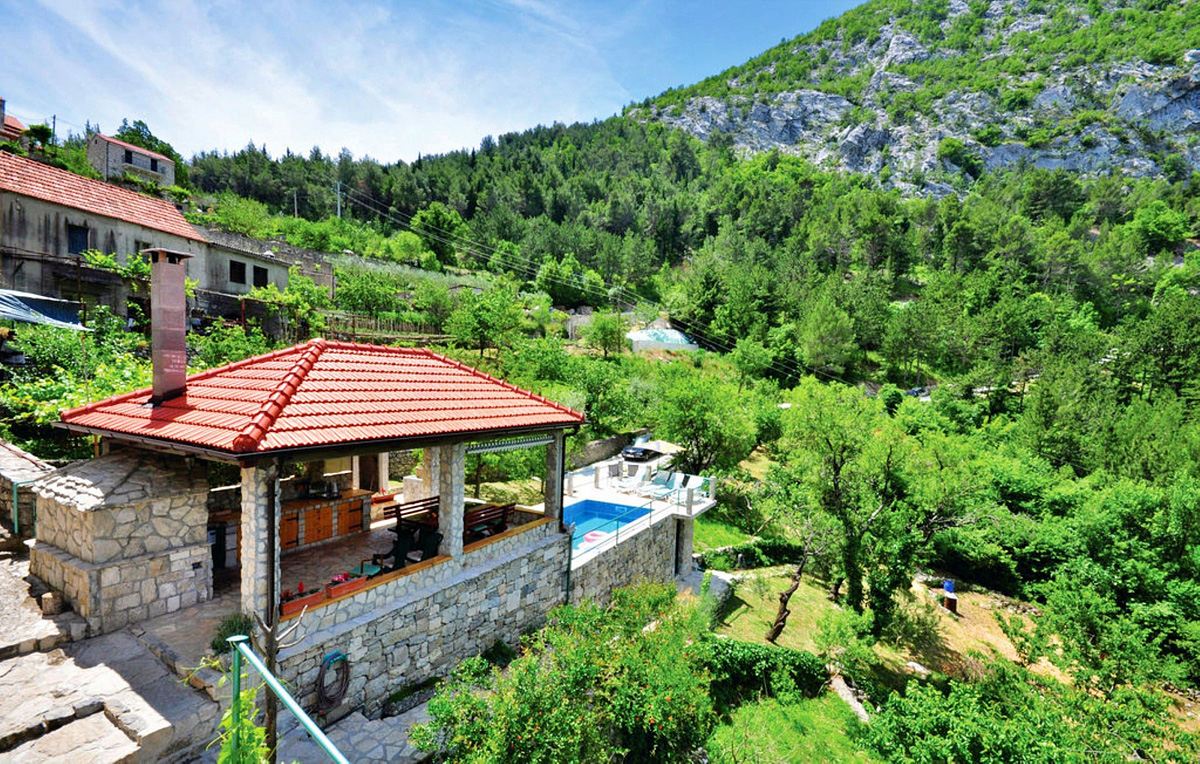 Vila Tiho je umístěna uprostřed nedotčené přírody na vyvýšeném místě v kaňonu řeky Cetiny