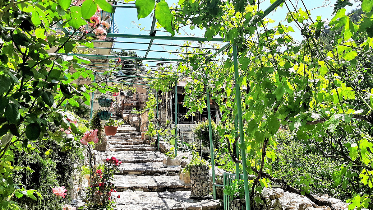centrální dům má v horním patře obytnou část s kuchyní, dvěma ložnicemi a koupelnou; hned vedle je menší domeček s jednou ložnicí a koupelnou, balkon
