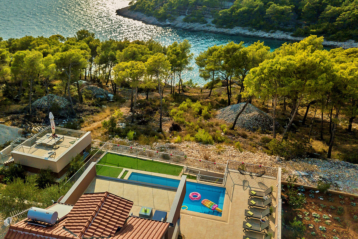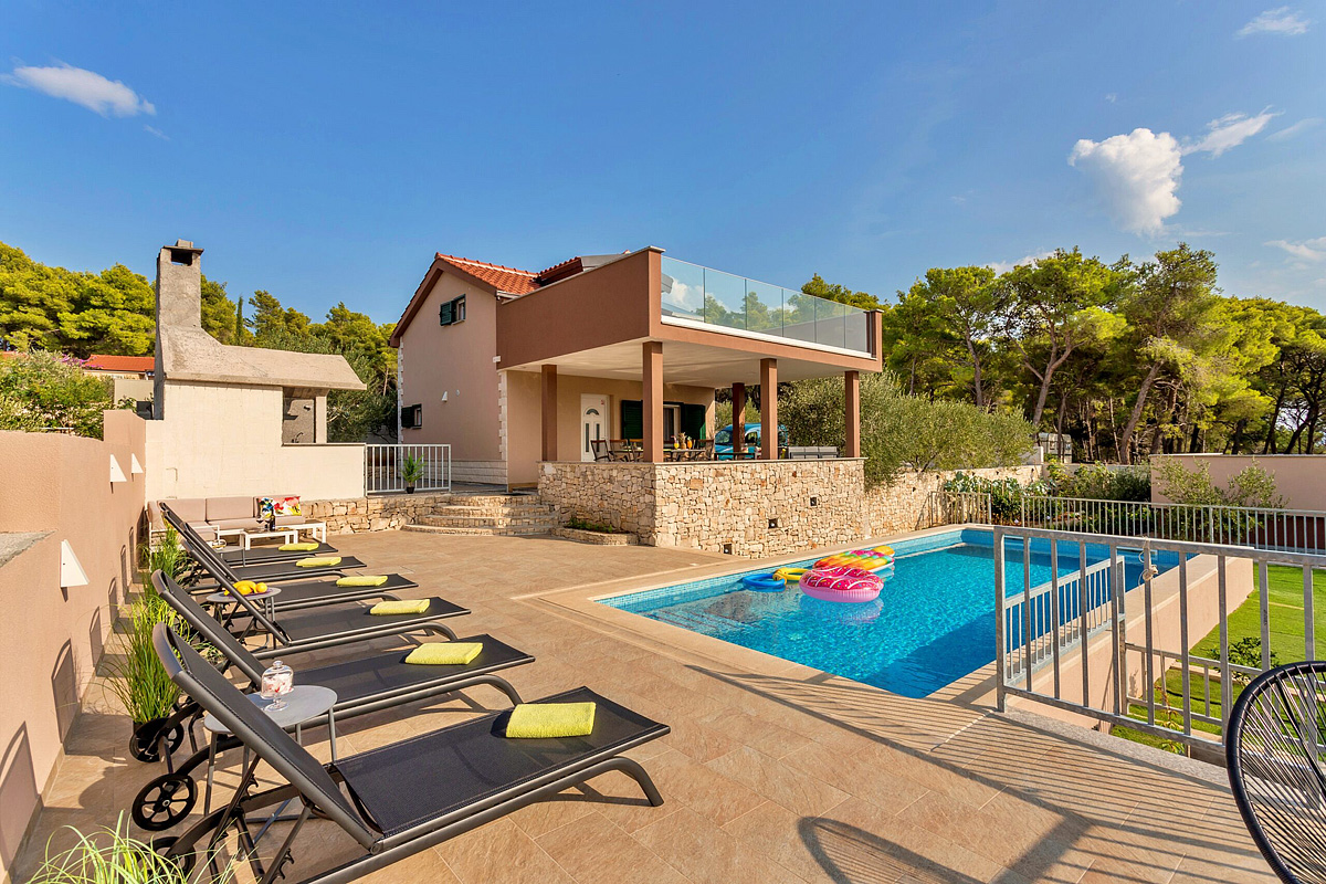 Vila Karmelota se nachazí na ostrově Brač v krásné zátoce s výhledem na otevřené moře