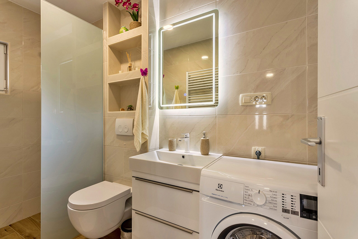 klimatizace, TV sat., gril, lednice s mrazákem, mikrovlnná trouba, elektrická trouba, wi-fi připojení k internetu, balkon, parking