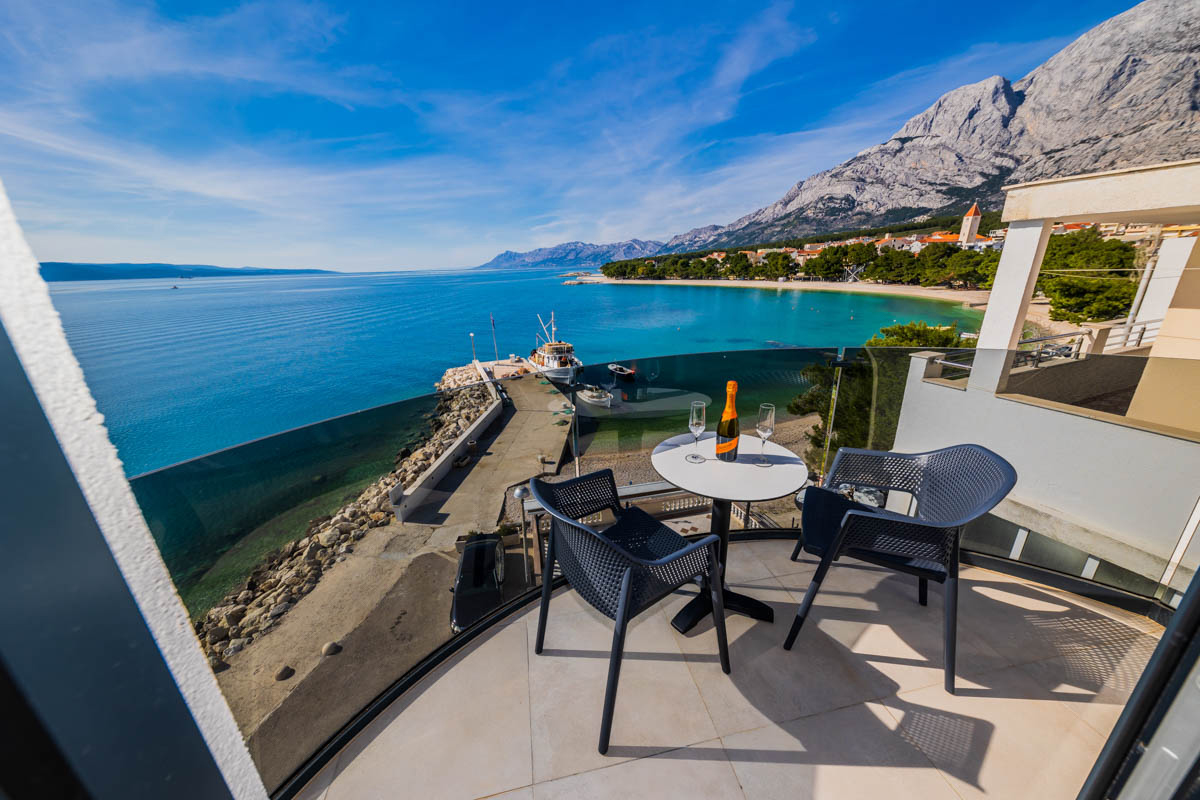 24 m² – pokoj s manželskou postelí, sociální zařízení se sprchou, balkon orientovaný na mořskou stranu