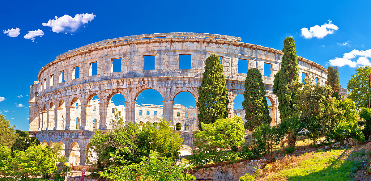 Pula je istrijská metropole a významný přístav ležící v největší zátoce Istrijského poloostrova. Je významně poznamenána římskou antikou. Zachoval se zde monumentální Amfiteátr, slavobrána Sergiovců a Augustův chrám. Jako velké turistické středisko je vhodná zejména pro sportovně zaměřené návštěvníky a pro ty, kdo se chtějí o dovolené bavit. Pláže tvoří většinou veliké skalní plotny, doplněné podle potřeby betonovými plošinami, značná část pláží je kamenitá a štěrková.