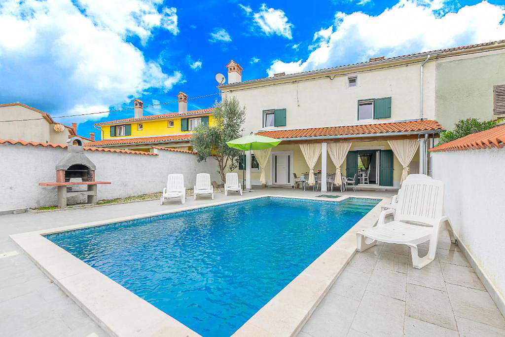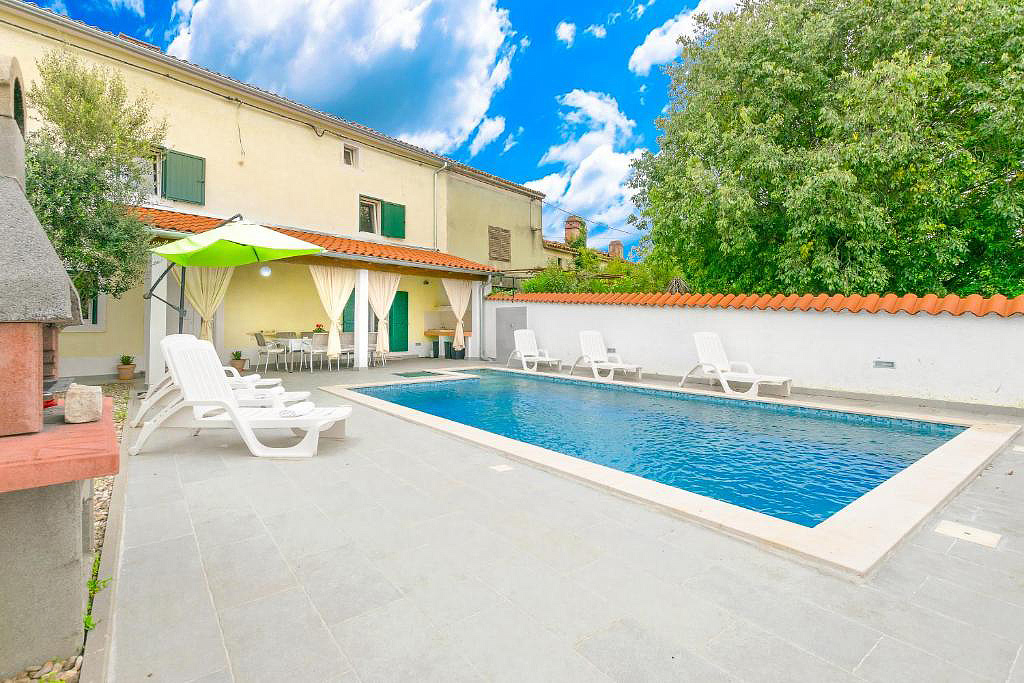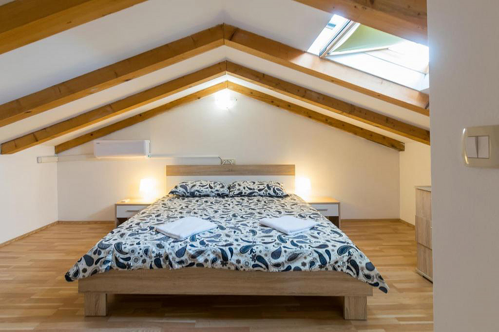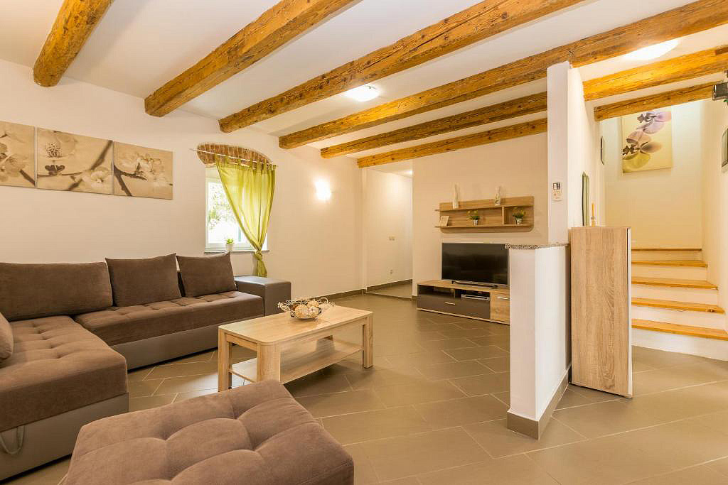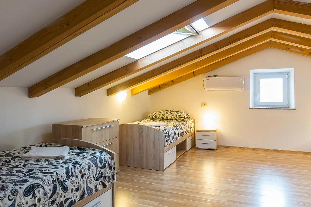 2x pokoj s manželskou postelí, 1x pokoj se 4 oddělenými lůžky, obývací pokoj, kuchyň, jídelní kout, 2x sociální zařízení se sprchou nebo vanou