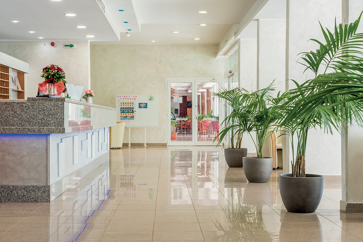 recepce / směnárna, restaurace, restaurace à la carte, bar, plážový bar, konferenční místnost, miniklub pro děti od 6 do 12 let, animační programy (07. 06. do 07.09.2025), dětské hřiště, parkoviště zdarma dle dostupnosti, autopůjčovna*, obchod se suvenýry*, úschovna kol* dle dostupnosti (úschovna kol s koutkem na mytí kol), wi-fi připojení k internetu