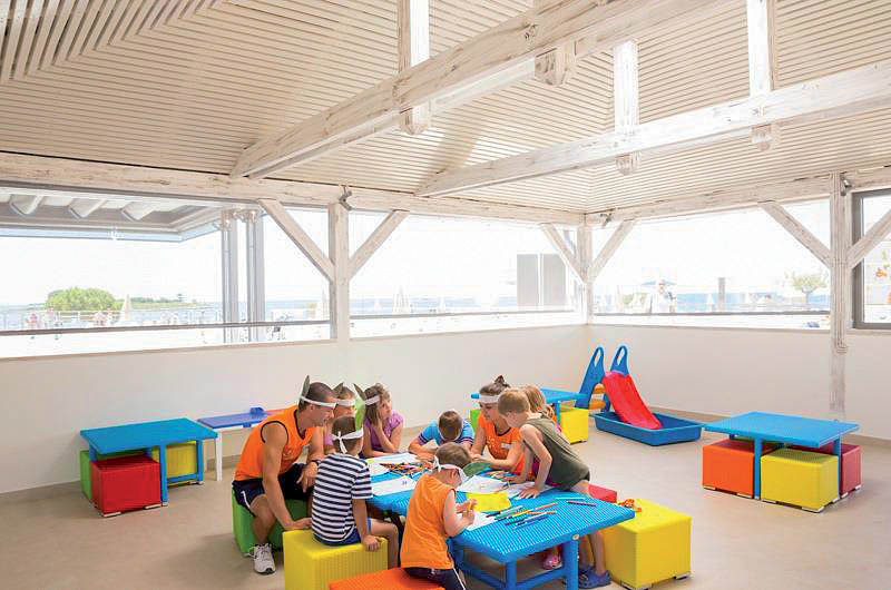 venkovní bazén se sladkou vodou (velikost 732 m²), tobogán, lehátka u bazénu zdarma, dětský bazén se sladkou vodou (velikost 130 m²), trampolíny*, 7 x tenisový kurt*, stolní tenis*, multifunkční hřiště*, basketbalové hřiště*, volejbalové hřiště*, beach volejbalový kurt*, minigolf*, vodní sporty*, potápěčská škola*, půjčovna kol*, půjčovna lodí* a sportovního vybavení*