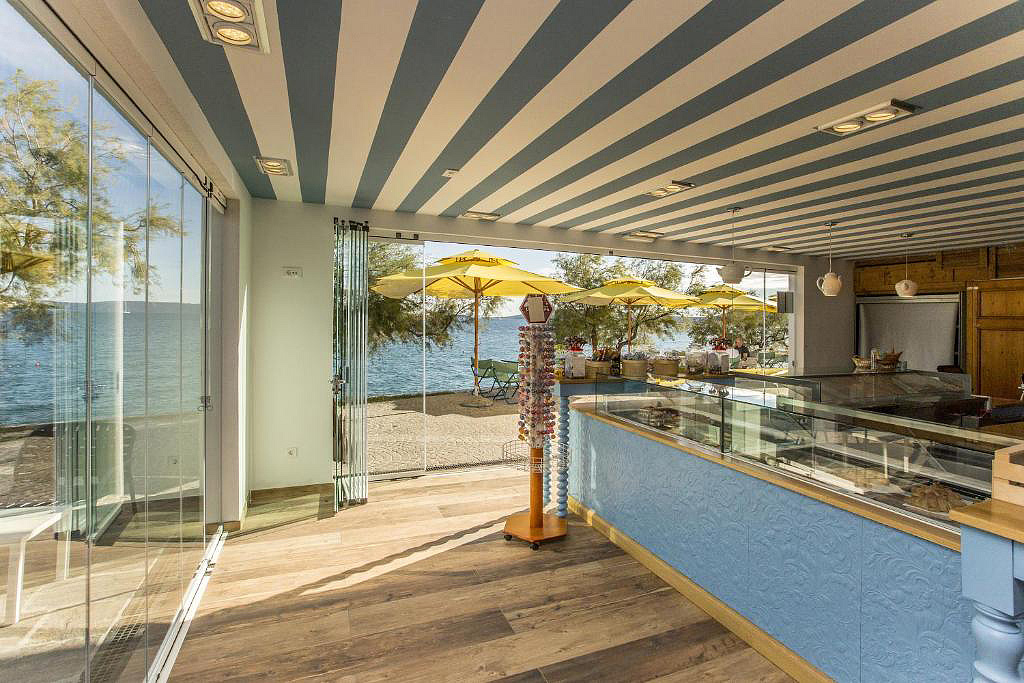 recepce / směnárna, à la carte restaurace, dalmatská restaurace s výhledem na moře, plážový bar, dětské hřiště, obchody, supermarket, bankomat, prádelna*, transfer*, možnost půjčení auta*, možnost zakoupení lístků na různé exkurze*, cukrárna, wi-fi připojení k internetu