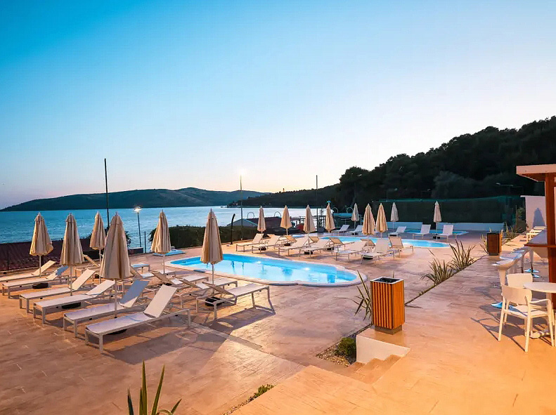 moderní komplex rozprostírající se blízko oblázkové pláže
