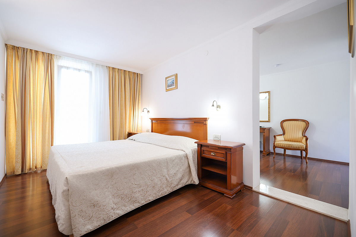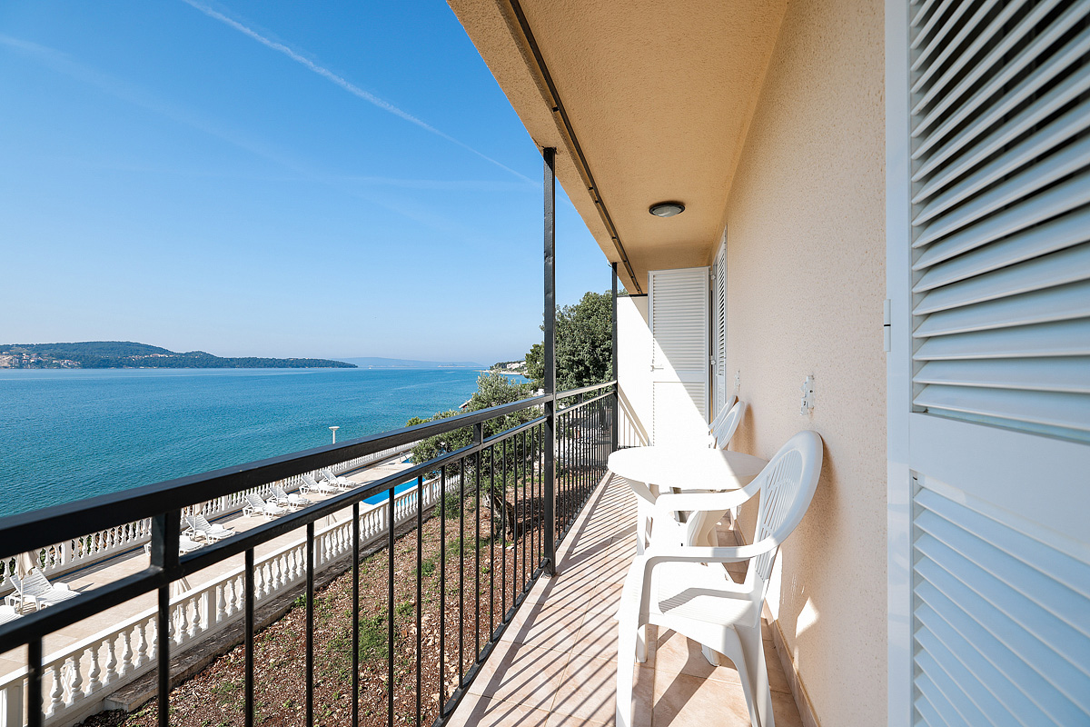 18 m² - pokoj s manželskou postelí či 2 samostatnými lůžky s možností přistýlky formou rozkládacího lůžka, sociální zařízení, balkon či terasa, orientace na mořskou stranu; pavilon