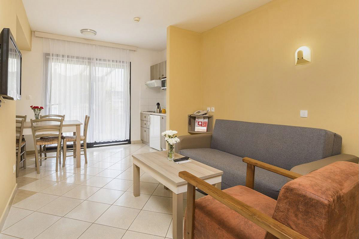 42 m² - ložnice s manželskou postelí či 2 samostatnými lůžky, obývací pokoj s rozkládacím gaučem pro 2 osoby a kuchyňským koutem, sociální zařízení, balkon, 1. nebo 2. patro