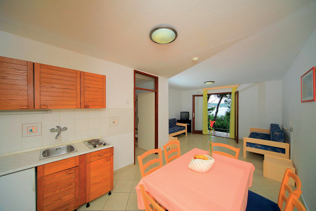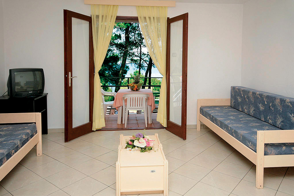 60 m² - 2 ložnice se 2 samostatnými lůžky, obývací pokoj se 2 samostatnými lůžky a kuchyňským koutem, sociální zařízení, balkon či terasa
