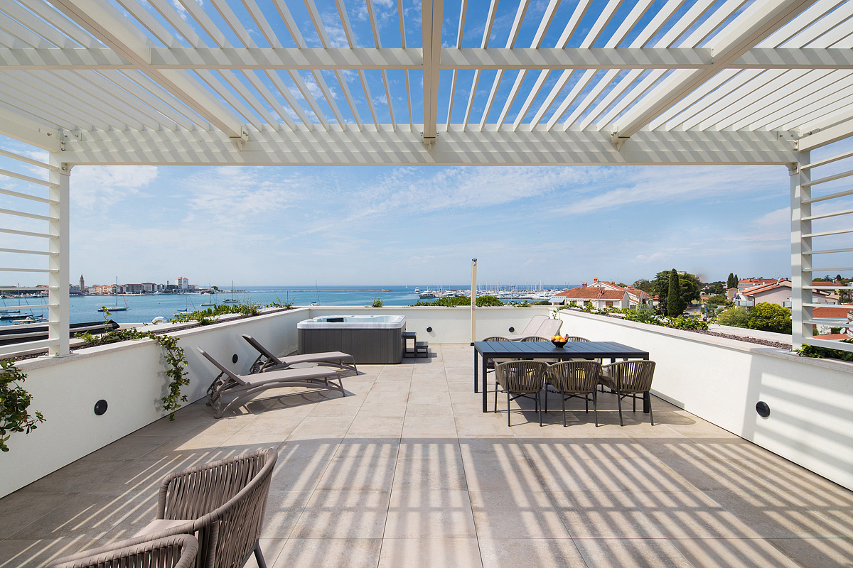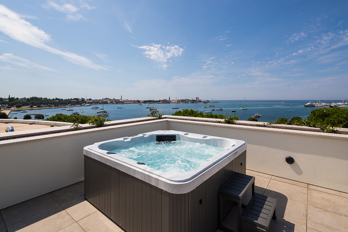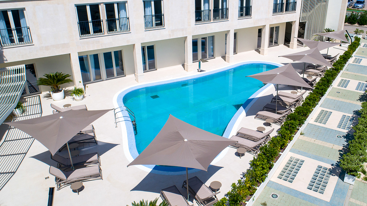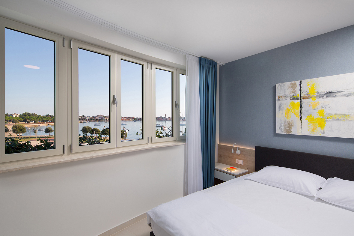 recepce (24 hod.), klimatizovaná restaurace, aperitiv bar, prostorná venkovní terasa s výhledem na záliv a přístav, 3 výtahy, garážové stání* (10,00 EUR / den)
